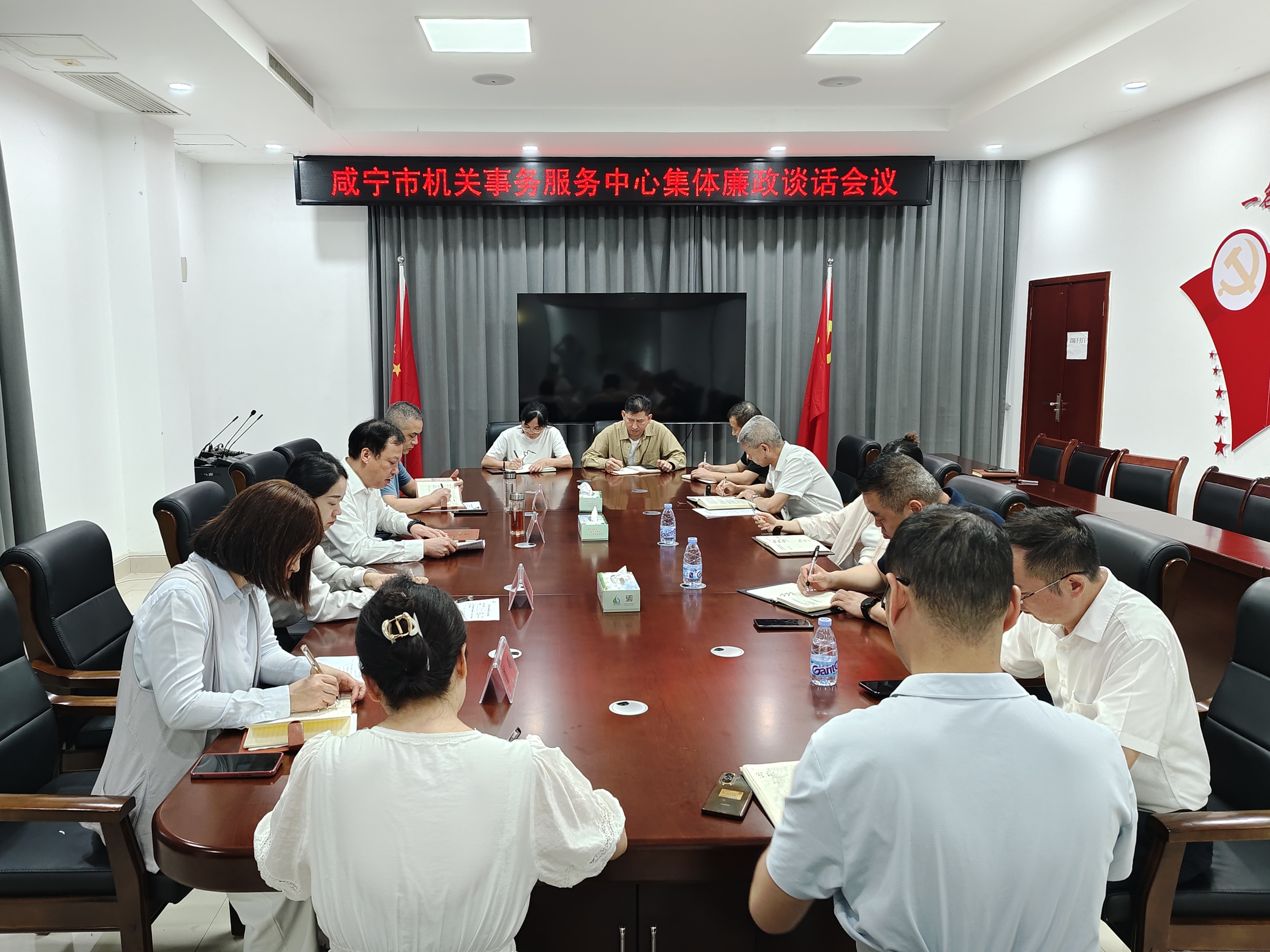 (通讯员:郭梦婷)为严明节日期间纪律要求,持续巩固深入贯彻中央八项规定精神学习教育成果,9月29日上午,咸宁市机关事务服务中心开展国庆、中秋节前集体廉政谈话。中心党组书记、主任聂明新同志作集体廉政谈话,班子成员、县级干部和各部室负责人参加会议。